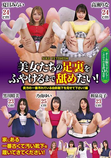 撮影前に出演女優たちにお願いしたのは、現在ある中で一番古くて汚い靴下を履いてくること。バーで決めているギャルの白く長いソックスは裏側は汚れていた。男は早速足裏を舐め、女子のかかとでオナニー!